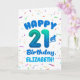 Celebre o aniversário de 21 anos com um cartão de aniversário brilhante, alegre e personalizável! Este cartão de aniversário com nome personalizado apresenta um balão ousado com o número vinte e um e confetes coloridos.