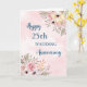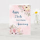 Feliz cartão de aniversário de casamento de 25 com lindos padrões de flores cor-de-água rosa e verso sentimental.