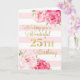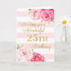 Feliz cartão de aniversário de 25 com flores cor-de-água rosa, listras cor-de-rosa pinceladas e verso atencioso.