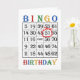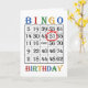 Cartão de aniversário de 51ruas. Diga Parabéns a um jogador de bingo com um cartão de bingo. A idade está circulada em vermelho. Um jogador maluco do bingo vai ter um grande pontapé neste cartão! Norma Cornes.