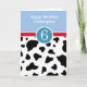 Um padrão de vaca preto e branco e um cartão de aniversário de 6 personalizado azul para rapazes. Este cartão de 6 azul e de vaca divertido pode ser personalizado com o seu nome na frente do cartão de saudação. A mensagem da placa dentro também pode ser personalizada se desejada. O dorso tem um design impressão azul e de vaca. Por favor, veja todas as fotos. Este cartão personalizado de 6 para rapazes faria um excelente de guardar para neto, filho, sobrinho, etc.