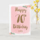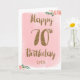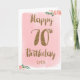 Cartão de aniversário de 70, cor-de-rosa e ouro personalizado, que apresenta uma cor-de-água rosa na frente contra o brilho dourado "feliz 70". Note que não existe uma falha real neste produto, mas sim um efeito design. Você será capaz de personalizar facilmente a frente com o nome dela. O dentro lê uma mensagem de aniversário e as costas podem personalizar-se com o ano. Isso faria uma boa manutenção para seu 70º aniversário.