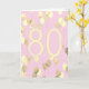Cartão de Aniversário de 80 de Balões Rosa e Doura