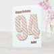 Um cartão de 94 anos muito moderno. Esta carta é realmente fabulosa. Grandes letras em listras modernas num fundo azul. Personalize para sua própria mensagem exclusiva.