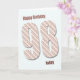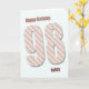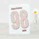 Um cartão de 98 anos muito moderno. Esta carta é realmente fabulosa. Grandes letras em listras modernas num fundo azul. Personalize para sua própria mensagem exclusiva.