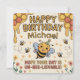 Celebre o grande marco do seu pequeno com este adorável cartão de aniversário de 1 ano personalizado com tema de abelha. Com um padrão moderno de favo de mel amarelo e uma ilustração de uma adorável abelha, este design de "Aniversário Hap-bee" é perfeito para o Michael (ou qualquer nome!).