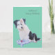 Esse filhote de collie bonitinho está acenando "olá" para desejar a alguém especial um Feliz Aniversário! ou ele está apenas sendo um pouco tímido e escondido atrás de sua pata? de qualquer forma este filhote preto e branco parece muito doce e faz um cartão de saudação de excelente. Eu adicionei uma simples mensagem aberta dentro do cartão. Este é um cartão de saudação personalizável, você pode personalizá-lo na frente e no dentro com seu próprio texto. A pintura original deste filhote fofo com seu ursinho azul é pintada em água.