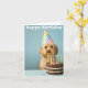 um cartão de aniversário de bapoo fofo para aqueles amantes de bapoas na sua vida ou para qualquer um que ame cachorros fofos com chapéu listrado com arco-íris com um bolo de aniversário de chocolate com aparência deliciosa com velas