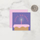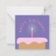 Cartão de aniversário roxo e cor-de-rosa com um bolo de aniversário ilustrado com glacé coberto por uma vela de aniversário iluminada, cercado por um texto curvo "Feliz aniversário!" por cima. Cores de todos os elementos são personalizáveis nesta placa. Mantenha um estoque desses cartões de aniversário genéricos para incluir com seus presentes de aniversário ou para emergências!