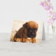 Cartão de saudação de cachorrinho de boxer bonito. Texto na frente diz "Feliz aniversário!" e dentro de texto lê "Espero que você tenha um dia de excelente!"