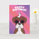 Deseje-lhes um Feliz Aniversário com este bonitinho cartão de saudação Boxer Dog estilo pop. Quer sejam amantes de cães ou donos, o vosso amigo ou amado sorri quando recebem este cartão de aniversário do cão. O feliz texto de aniversário na frente do cartão dobrado pode ser facilmente editado para dizer qualquer mensagem que você gostaria, e até temos cinco diferentes planos coloridos para você escolher, vermelho, verde, rosa, azul ou laranja. Se você prefere por que não ser criativo e apagar nosso fundo e fazer o seu?