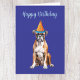 Este adorável cartão de aniversário de cão Boxer inclui um cão Boxer fofo num gráfico de chapéu de aniversário, bem como um ditado personalizado no dentro. Este design inclui também um fundo magenta. Aproveite este cartão de aniversário de cachorrinho Boxer!