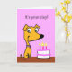 O cão laranja está prestes a soprar as velas num bolo de aniversário branco. Deseje ao seu amante de cachorro um feliz aniversário.