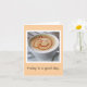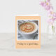 Um cartão de aniversário brincalhão que fará o seu receptor sorrir com uma fotografia engraçada de um café com um rosto feliz na espuma. O fundo é uma cor de pêssego. Este cartão será apreciado tanto por homens como por mulheres.
