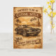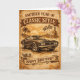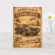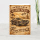 Um cartão de aniversário inspirado no vintage com uma ilustração detalhada de um muscle car clássico dos anos 60. Este design usa uma paleta de cores sépia quentes com uma textura de papel grunge para criar um sentimento retrô autêntico. A tipografia apresenta uma fonte serifada clássica com a mensagem "MAIS UM ANO DE ESTILO CLÁSSICO", tornando-o perfeito para entusiastas automotivos e colecionadores vintage.