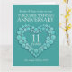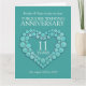 Cartão personalizado de aniversário de casamento de turquesa. Personalize este cartão de aniversário com seu relacionamento ou nomes de casal, ano de casamento e dentro. O exemplo diz Irmão e cunhada no seu aniversário de casamento da turquesa, 11 anos. Outros itens correspondentes estão disponíveis. Arte gráfica e design de coração turquesa por Sarah Trett para www.mylittleeden.com