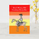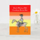 Um cartão de cumprimentos de aniversário humorístico do Cowboy, com um vaqueiro esquelético andando de cavalo esquelético, ao pôr do sol. O dentro de texto e o exterior são totalmente personalizáveis para ler o que você quiser. Cartão de aniversário de excelente para qualquer vaqueiro.