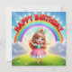 Cartão de aniversário colorido para crianças com uma linda princesa de aniversário.