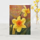 Esta carta encantadora mostra o meu trabalho artístico original, que é a minha fotografia de flores Daffodil florescentes num jardim de Primavera, que são flores alegres e felizes em tons amarelos. Eu aplicei uma técnica de pintura a aquarela antiga para dar a ela um talento artístico. A frente do cartão diz, "Cartões de aniversários!" e a dentro do cartão diz "Esperança que este dia floresça com muita felicidade e relaxamento! Feliz aniversário!" Um cartão de excelente para qualquer amante de flores.