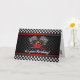 Cartão de Aniversário de Desenho de Esportes de Corrida de Carro, com texto personalizável.