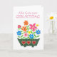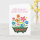 Um cartão de aniversário bonito com um design de "caixa de janela" colorido de uma colagem de papel pintada a mão por Judy Adamson. A saudação alemã está cor-de-rosa e o dentro fica vazio para a sua própria mensagem.