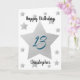 Cartão de aniversário de 13 das estrelas de prata personalizadas. A frente apresenta estrelas de cinza aquática e um lugar para você personalizar com o nome do destinatário do aniversário. A mensagem do cartão dentro pode ser facilmente personalizada e a parte traseira do ano. Esta estrela personalizada cartão de 13 faria uma única manutenção para ele.