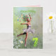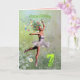 Uma bela fada de flores de bailarina dançando num cartão de aniversário para uma criança de sete anos.