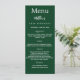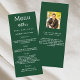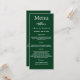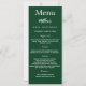 Cartão de menu de festa de aniversário. Personalize e adicione um nome, idade, data e menu. Um fundo verde esmeralda. Letras brancas coloridas. Voltar: adicione uma foto da cara de aniversário, fatos divertidos