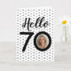 Celebre um marco com este cartão de saudação de 70 de na moda, com texto ousado "Hello 70", pontos brancos e negros lúcidos e sua foto favorita do convidado de honra. Cuidadoso e totalmente personalizável, é perfeito para enviar desejos calorosos no seu dia especial. Adicione a sua dentro de mensagem para torná-la realmente inesquecível. Altere o número para fazer este 60 ou qualquer outro ano com um zero para a foto.