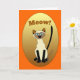 Um cartoon siamês diz, "Meow!" neste cartão de aniversário colorido e humorístico. Você quase pode ver a personalidade do gato siamês pronta para atacar! Dentro: Isso significa "Feliz Aniversário!" na língua pessoas.