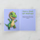 Torne o aniversário de alguém especial com este adorável cartão de aniversário de dinossauros (bolsa de presente correspondente disponível)! Um dino verde alegre é rodeado por flores vibrantes em um fundo de gingham azul lúcido, perfeito para qualquer criança que ama os dinos. Texto personalizável disponível na frente e no dentro - personalize-o para qualquer nome ou ocasião!
