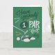 Este design apresenta uma ilustração original de calçados de golfe, um putter, uma bola e camisetas. Ele contém letras de mão. A dentro apresenta um pedaço de bolo com algumas camisetas de golfe. Uma mensagem personalizada pode ser adicionada à dentro para tornar este cartão verdadeiramente especial para um macho ou fêmea que ama o jogo de golfe.