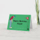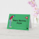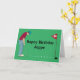 Golfista personalizado, vestindo um boné, camisa vermelha e calças azuis, colocando uma bola de golfe em um cartão de aniversário buraco. Personalize o número no sinalizador, a saudação na frente e o dentro de mensagem.