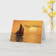 Envie cartões de aniversários com este belo cartão. Um iate veleja num pôr do sol ouro sobre um oceano tranquilo. Um cartão de excelente para um caçador ou marinheiro.