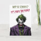 Envie um desejo de aniversário muito humorístico com este cartão inspirado no Joker. Perfeito para o amigo ou membro da família que ama um pouco de caos. Este cartão certamente trará um sorriso (ou um sorriso sinistro) à sua face.