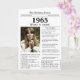 Diga feliz aniversário a alguém nascer em 1965 com este único cartão de aniversário estilo Jornal, incluindo uma foto do receptor e uma coleção de fatos divertidos e notícias do mundo desde o ano de seu nascimento. Seja criativo e crie uma manutenção personalizada. Projetado para se assemelhar a um jornal antigo no estilo clássico preto e branco. Uma maneira fofa e divertida de celebrar os anos 60!