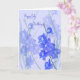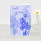 Larkspur flores bonito sobre fundo azul claro e gramíneas altas. As flores de fundo são desbotadas por um efeito de aparência sombria, a grama também é desbotada por efeito e uma design complementar. Cartão perfeito para uma pessoa com aniversário em julho. O Larkspur é o mês de julho de uma flor oficial. Obrigados a Pixabay para fornecer a imagem das flores.