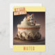 Um cartão de aniversário com um gatinho sentado num bolo de aniversário na frente com "Feliz Aniversário", bonés negros. Personalize a frente adicionando seus nomes. O dentro da placa apresenta espaço para a sua mensagem escrita ou manuscrita.