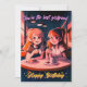Este cartão de aniversário fofo e vibrante é perfeito para o seu melhor amigo ou namorada. O cartão apresenta uma ilustração em estilo cartoon de duas garotas sentadas em um balcão de compro de café, sorrindo e apreciando a companhia umas das outras. A paleta de cor rosa e laranja dá ao cartão uma vibração divertida e divertida. No texto lê-se "Você é o melhor namorada" no topo, seguido de "Parabéns" no final. Mostre seu apreço pelo seu amigo especial com este cartão adorável e sincero.