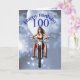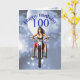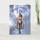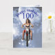 Uma linda moça andando de bicicleta pelas estrelas no céu. Um cartão de aniversário muito diferente para o homem que gosta de andar.
