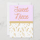 Este cartão mostra uma design doce para uma doce sobrinha! A estética é uma estética sorvete, fazer a carta toda muito mais doce de dar. O verso contém o mesmo design cor-de-rosa e dourado/bege com o logotipo Block by Block Alaska. Por outras palavras, este cartão é perfeito para aquela doce sobrinha!