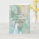 Cartão de lembrança de óbito para a mãe de alguém. O design é um verde pastel misturado com folhas desbotadas no fundo. O interior está em branco, para que você possa adicionar suas próprias palavras. Agradecemos à Design Cuts por alguns dos elementos do design.