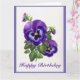 Cartão de aniversário de pansias roxas