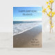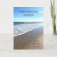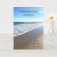 Este cartão de aniversário de praia mostra uma foto de uma bela praia na frente. As palavras "Parabéns" aparecem no topo e você pode personalizá-las com o nome do destinatário do aniversário. No fundo da praia estão as palavras, "Enquanto Andas com o Senhor." Dentro, encontrará a mesma cena de praia com cores esmaecidas como pano de fundo para uma adorável mensagem de aniversário. Copyright Kathy Henis