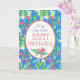 Um Cartão de Aniversário floral bonito para uma "Step-Sister", com um padrão de Mock Orange e Weigela sobre um fundo azul brilhante. O design é de uma aquarela pintada manualmente e a inscrição está em cor-de-rosa profundo e você pode personalizar a mensagem dentro.