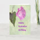 A Glória da Manhã é a flor do mês de setembro e este cartão bonito tem uma lavanda rosa com gotas d'água. O fundo é um verde limão perfeito para arrancar a cor da flor. Cartão de aniversário perfeito para alguém nascer em setembro.