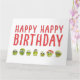 Cartão de aniversário de vegetais dobrado e engraçado. Faça pessoas sorrir. Um grupo divertido de couves-de-bruxelas com pequenos chapéus e olhos que te olham bem. Feliz aniversário em grande versão vermelha moderna contemporânea. Personalize-o com a sua própria mensagem. Aproveite!