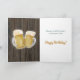 Há muitas maneiras de comemorar um aniversário, mas poucos são melhores do que com uma bebida comemorativa! Com um tema engraçado sobre a colina, este cartão de aniversário cumprimenta o receptor com a frase "Dando-o para esta velha cerveja!" Duas canecas de cerveja de cerveja aquarela com espuma transbordante decoram a frente e o dentro do cartão. Um fundo de madeira escura adiciona um tom masculino e rústico ao cartão. Você também pode personalizar a saudação da língua na bochecha no dentro. Deseje ao homem mais velho na sua vida feliz aniversário com este cartão de aniversário de cerveja.