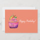 design de um luxo cupcake roxo num cartão de aniversário cor de pêssego
