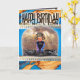 Cartão de aniversário com espaçonave embaixo para personalizar e colocar um nome em um design único por alteração física e vendido pela Zazzle
